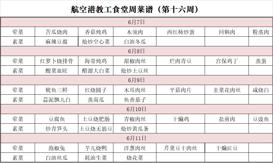 两校区食堂第十六周菜谱