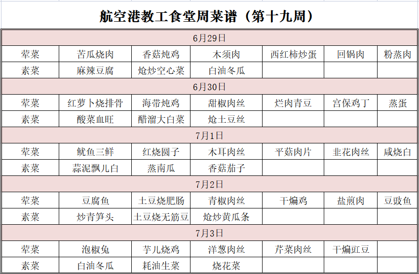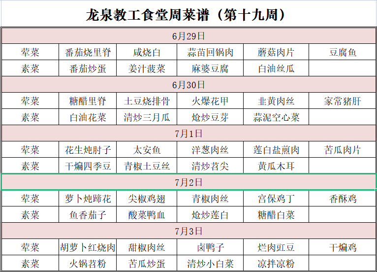 欢迎各位教职工查阅两校区教工食堂第十九周菜谱并提出宝贵意见建议。