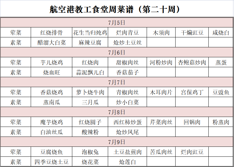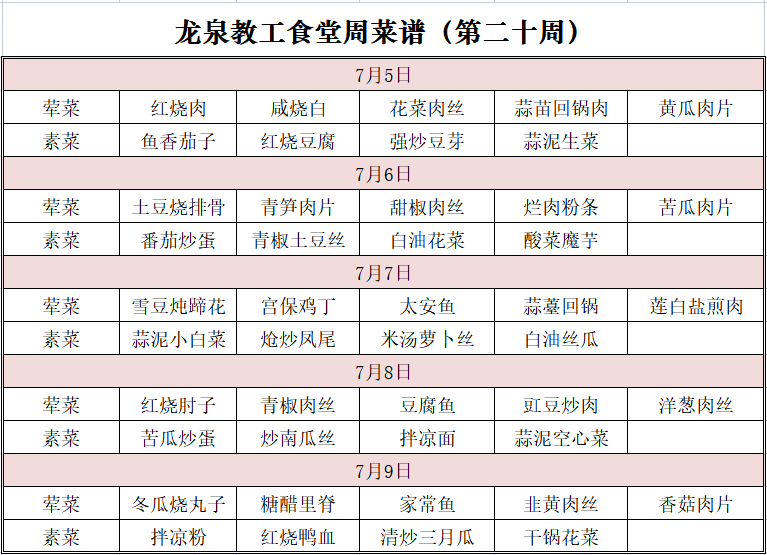 欢迎各位教职工查阅两校区教工食堂第二十周菜谱并提出宝贵意见建议。