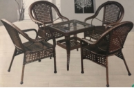 采购项目参数:桌面尺寸:600*600,整体框架为铁艺加粗框架,四腿强力支撑,结构稳固,增加承重力。桌面采用钢化白玻璃,表层采用宽大PE藤条,PE材质,防水防潮,藤椅座面宽大设计,外型美观,透气舒适。一桌四椅。