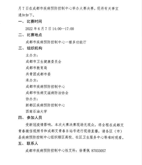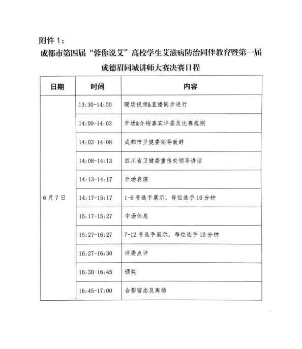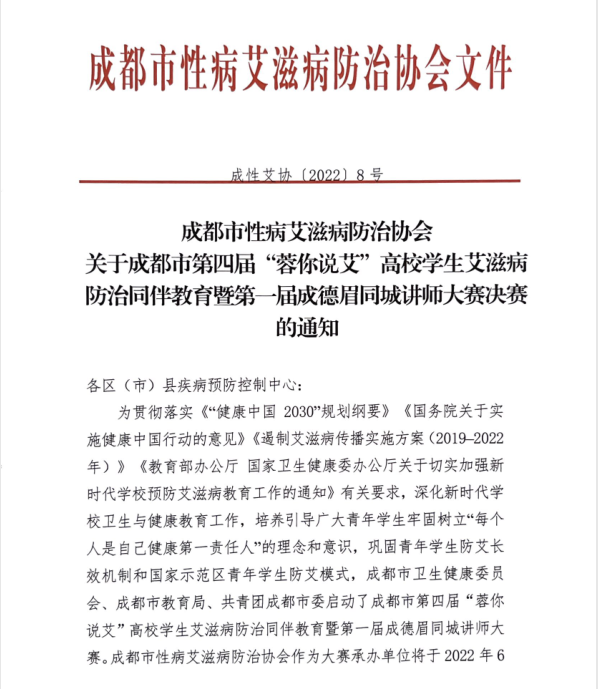 关于成都市第四届“蓉你说艾”高校学生艾滋病防治同伴教育暨第一界成德眉同城讲师大赛决赛的通知