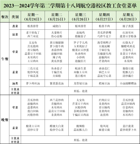 2023——2024学年第二学期第十八周航空港校区教工食堂菜单