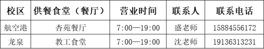 (二)7月13日—8月28日期间龙泉校区学生食堂、航空港校区教工食堂暂停营业,8月29日(星期四)起正常供应。