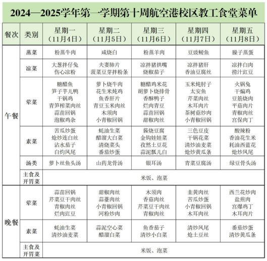 2024——2025学年第一学期第十周航空港校区教工食堂菜单