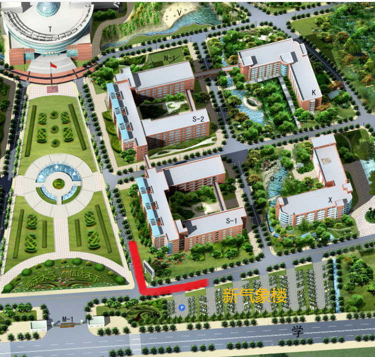 第五教学楼周边部分道路(主要影响南、西两侧人行道及车行通道,见下图红色标记部分)。