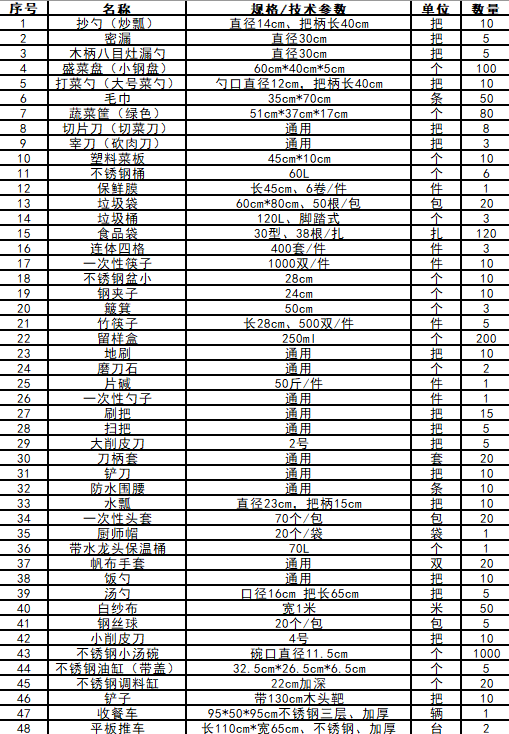 成都信息工程大学航空港校区学生一食堂现需采购一批餐具及低耗品。欢迎符合资格条件要求的合格服务商参与竞价,综合考虑自身经营情况进行合理报价。