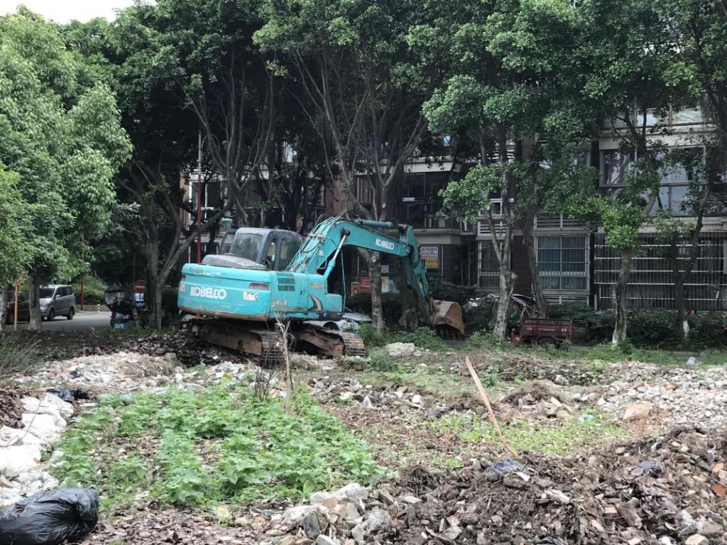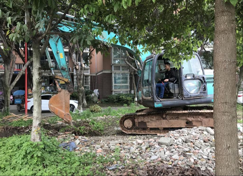 经过两天的平地施工,生态休闲区布局已具雏形,接下来将种植绿植花卉,铺设人行通道,布设休闲设施。