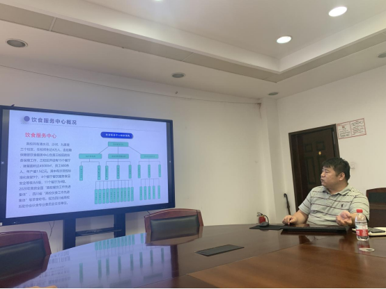 曾翎对成都信息工程大学后勤基建处一行人的来访表示热烈欢迎,并介绍了电子科技大学后勤保障部饮食服务中心的基本情况、运行模式、食堂内控管理体系、基本大伙保障和特色餐饮服务情况。