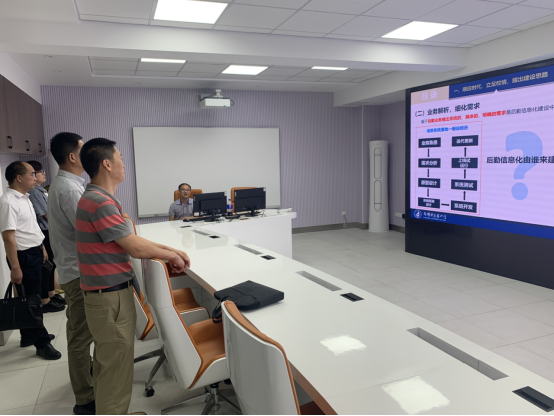杨永成带领我校调研工作小组参观了智慧后勤中心,并就智慧后勤建设思路、项目落地落实、建设成果、效能提升等方面做了详细介绍。