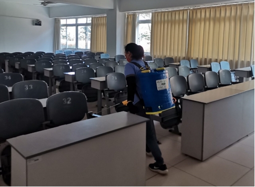 对教学内外区域、办公内外区域、学生生活内外区域、食堂内外区域、校园公共区域、洗手间等进行了不留死角,不留盲区的全面消杀;同时加强校园建筑通风换气,多措并举,筑牢校园疫情防控防线,坚决遏制疫情传播。