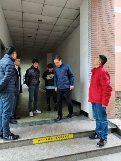 于世祥一行查看了校园绿化、环境卫生、教学楼宇、学校食堂、校医院、施工现场等相关场所,对教学区域公共卫生、走廊、楼道、教室内照明、桌椅板凳等进行了详细检查,对检查中发现的问题提出限期整改要求。