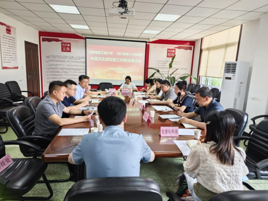 四川省第二中医医院总会计师胡凯介绍了《中医药文化进成都信息工程大学工作方案(2023年-2026年)》。会议就方案内容进行了深入交流讨论。