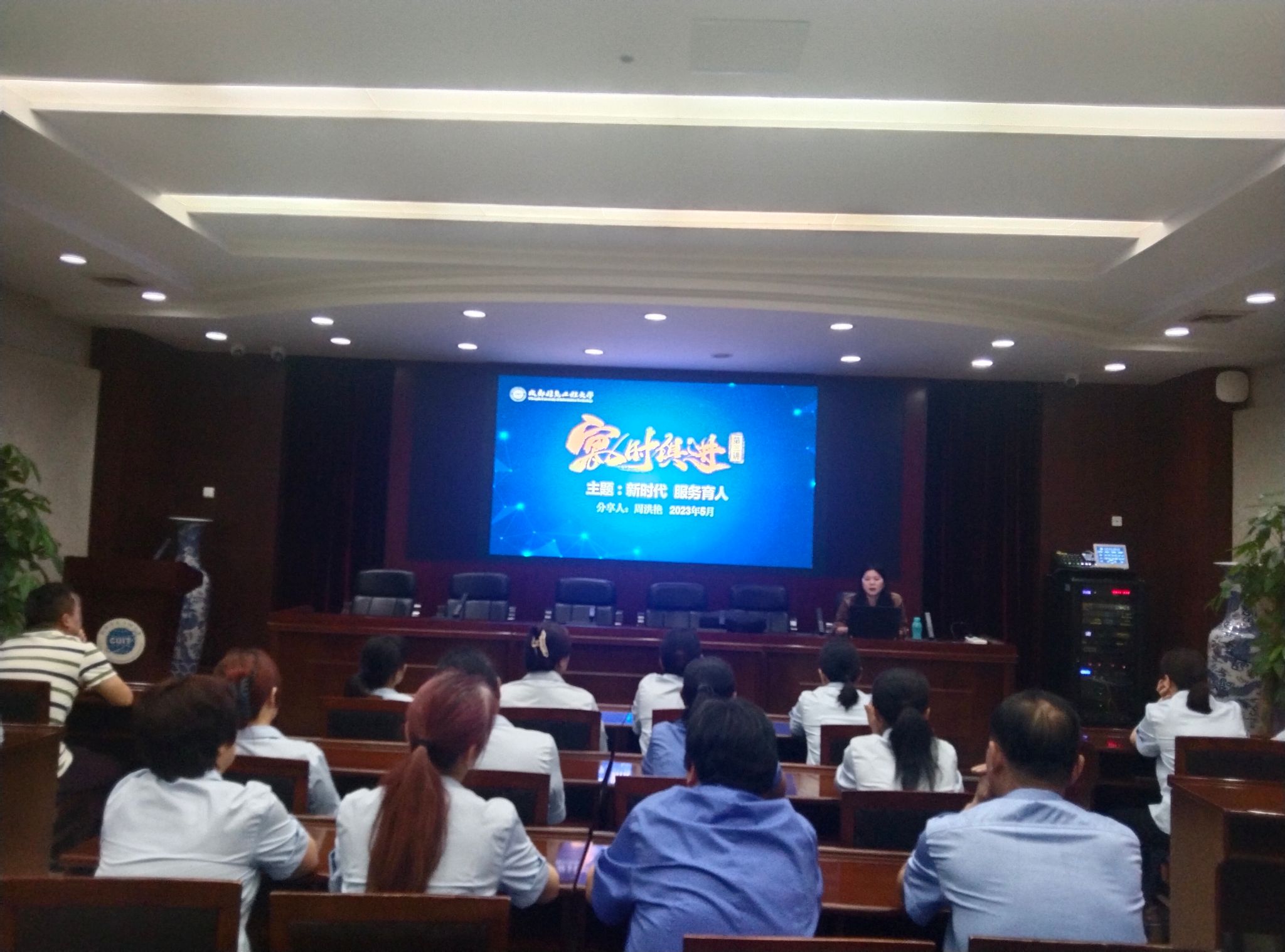 此前,四月、五月举办了两期月讲堂。公寓服务中心主任杨建功作为四月讲堂主讲人,他结合多年的行业摸索和积累,以学生公寓团队建设和学生公寓“最美之星”评选活动作主题宣讲。他讲到不断加强团队建设,以评促建,树立一批业务先进榜样和典型,充分发挥公寓人爱岗敬业、用心服务的责任感和使命感。