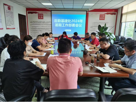 会议就后勤基建处各部门暑期具体工作进行了通报,重点对物业、基建、能源维修、公寓、饮食等方面进行了安排部署。
