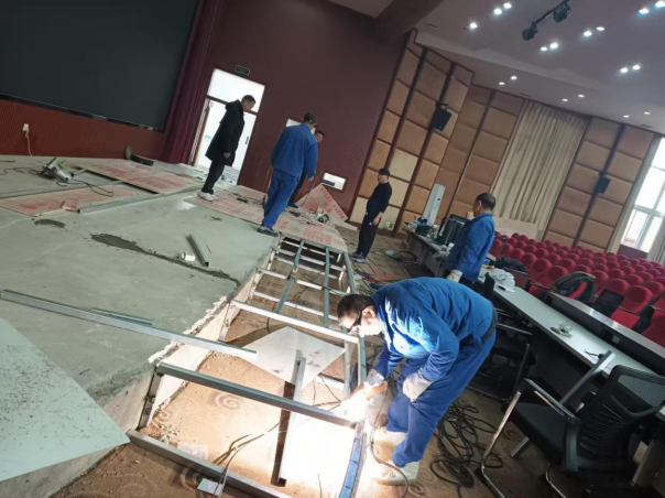 寒假期间,后勤基建处接到师生反馈,龙泉校区学术报告厅存在舞台设施老化、面积过小、线路杂乱等问题,存在安全隐患,影响各类活动的开展。