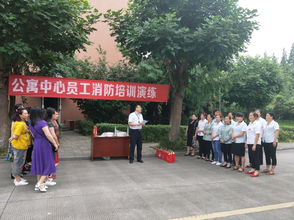5月23日早8:30-9:30分,公寓管理中心三中心在学生公寓17栋东侧道路上进行了员工消防培训演练。