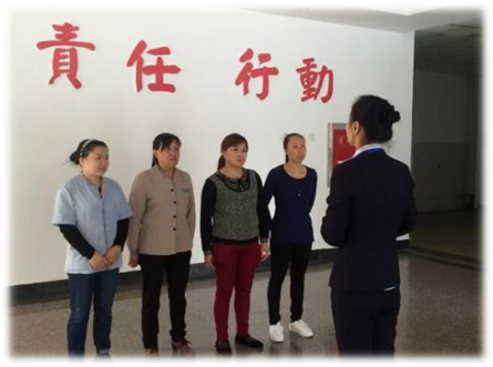 2017年9月31日龙泉保洁部门分组对部分员工进行入职培训及岗位分工布置。要求:一、遵守公司规章制度;二、服从工作安排;三、提高个人行为规范