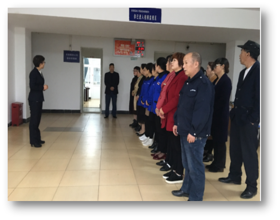 10月10日,龙泉校区物业管理服务中心内保洁部长游梅对全体内保洁员工全面培训了服务行为管理制度。