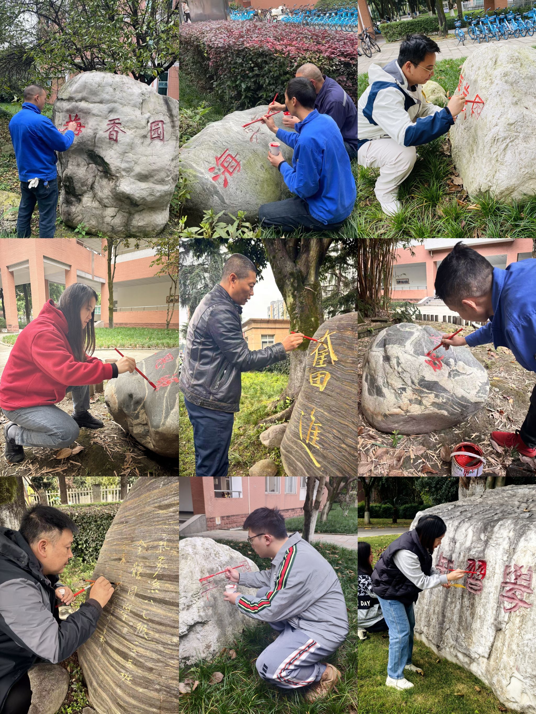 为增强党员担当意识与奉献精神,传承校园文化底蕴,11月11日上午,后勤基建党委第四支部组织开展“朱笔点石韵,初心映校园”景观石描红主题党日活动。第四支部书记陈杉,能源与修缮服务中心维养组等10余人,以朱漆为墨、石面为笺,将党建精神镌刻成永恒的文化印记。